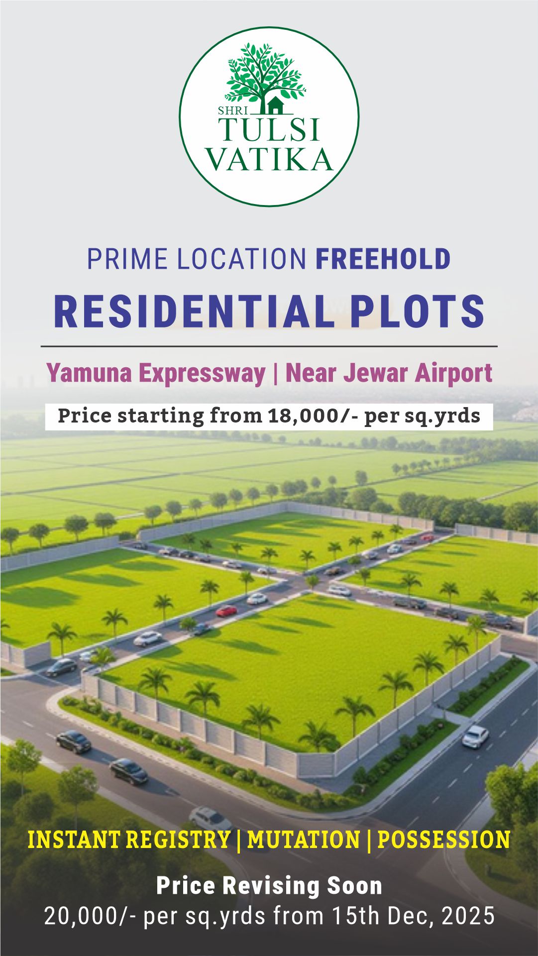 If you are looking for residential plots in Yamuna Expressway or land for sale near Jewar Airport, Shri Tulsi Vatika Gated Society is here to make your investment safe, profitable, and future-ready.